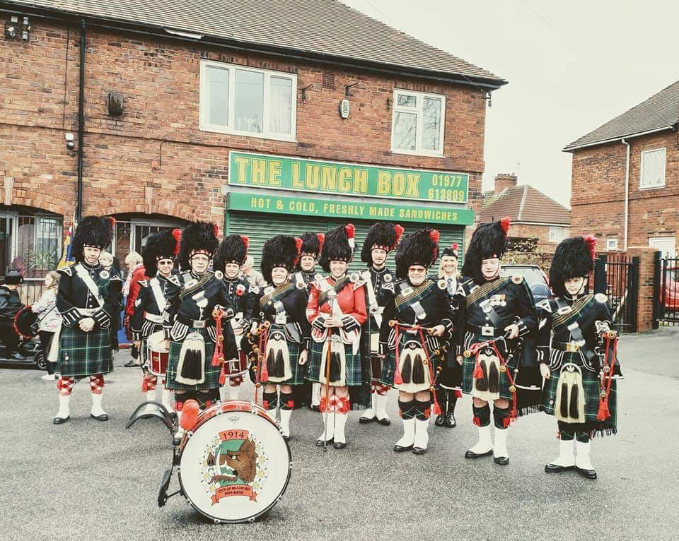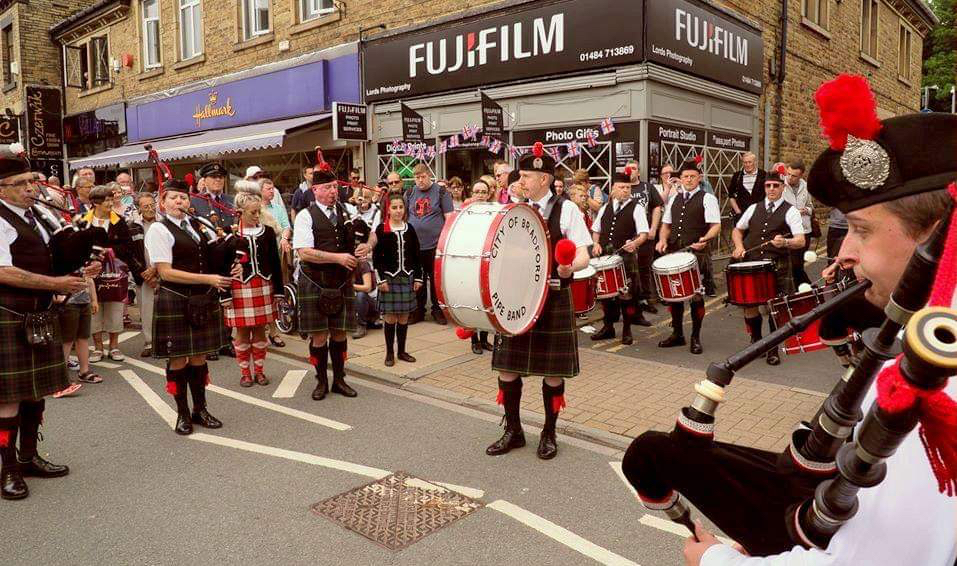 We are the City of Bradford Pipe Band – a community pipe band established in 1914 and made up of volunteers of all ages from across Yorkshire and Lancashire. In addition to bagpipes and drum corps we also have a group of talented highland dancers who perform with the band at engagements. New members, experienced players/dancers or beginners are welcome to join us, have a look at our contact page for ways to get in touch. Free tuition is provided to learners and uniforms provided for anyone playing in the band.